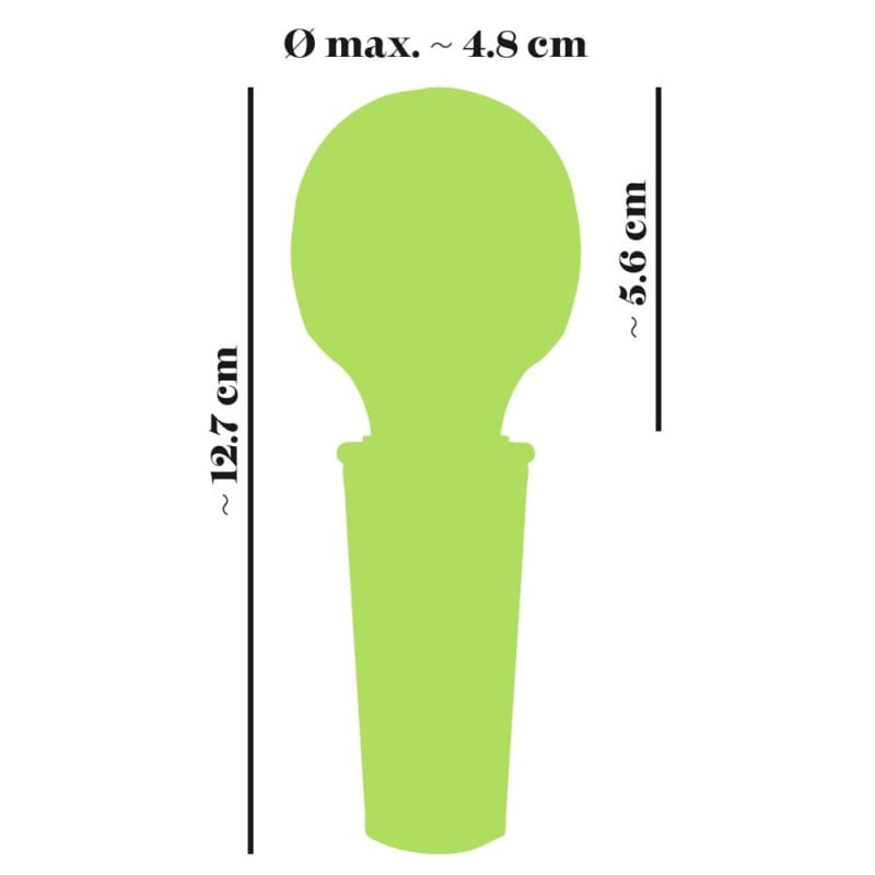 Ukupna dužina 12,7 cm, masažna glava 5,6 cm duga, Ø max 4,8 cm.